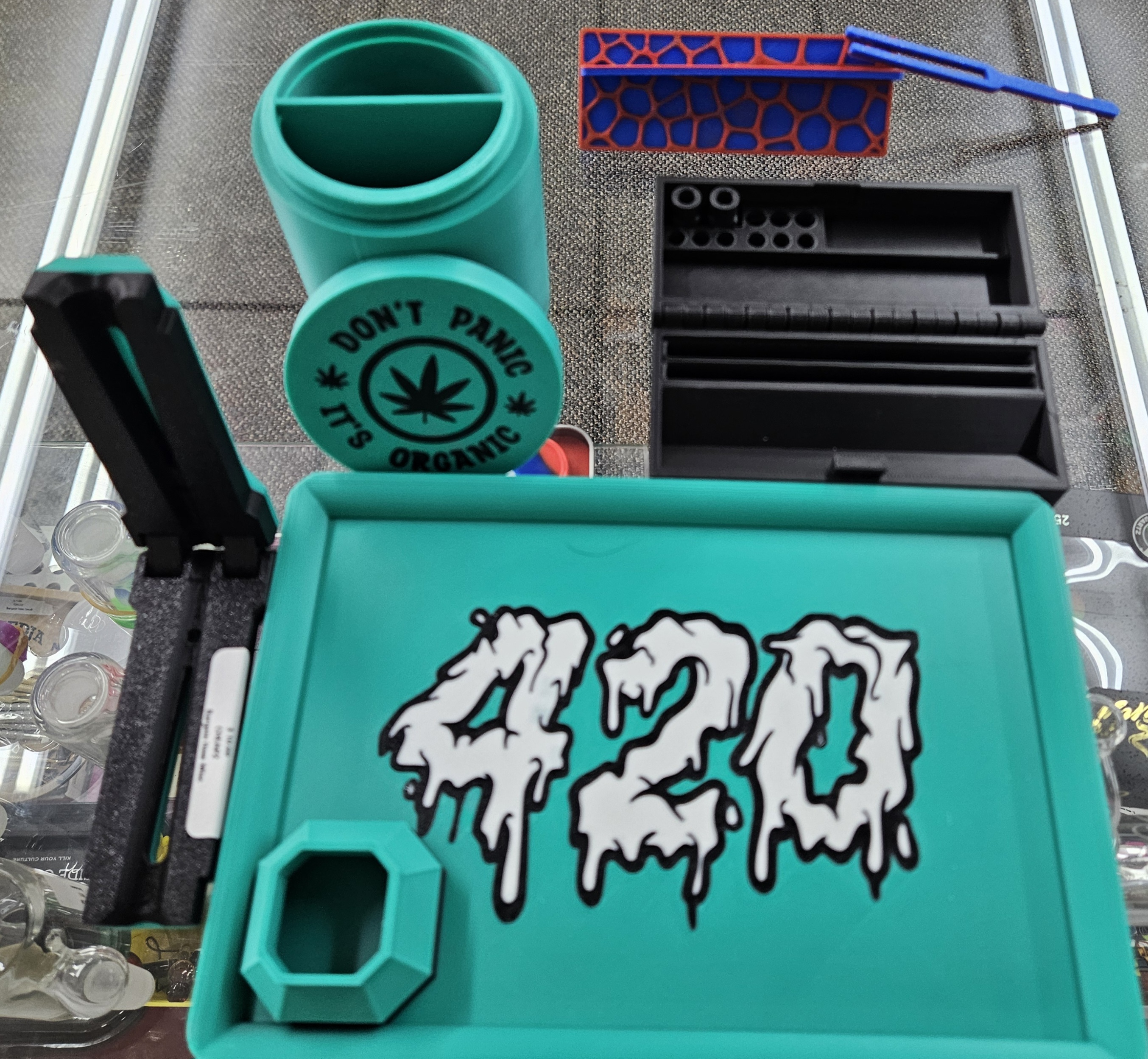 3D Printed Rolling Accesories - $10 each or the complete tray set for $35. You get a cone stuffer, a portable rolling station, a storage container and a tray -- all 3D printed. There is an optional portable mini rolling station sold separately for $5. Cone stuffers also sold separately. Limited time only.