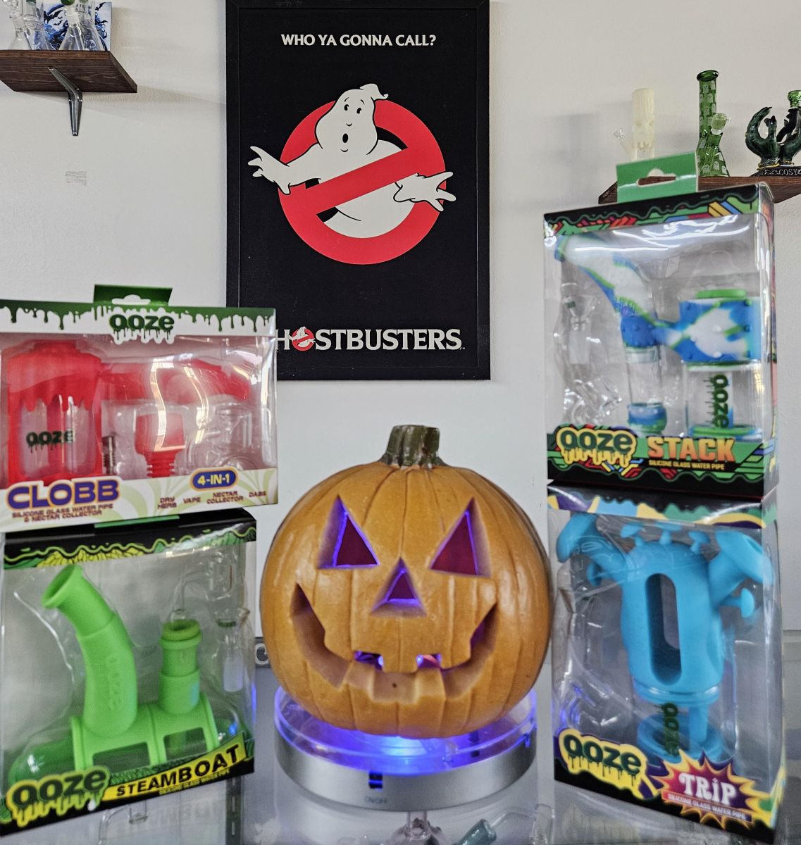 Our Ooze silicon waterpipe clearance will make you smile too. We're cleaning house getting ready for the Christmas stuff and something's gotta go. Like the Oooze SteamBoat - This silicon and glass bubbler looks like a submarine and is both a dab rig and a waterpipe for flower. Versatile. Plus it comes with a magnet on the downstem to keep your dab tool or lighter handy-$35.