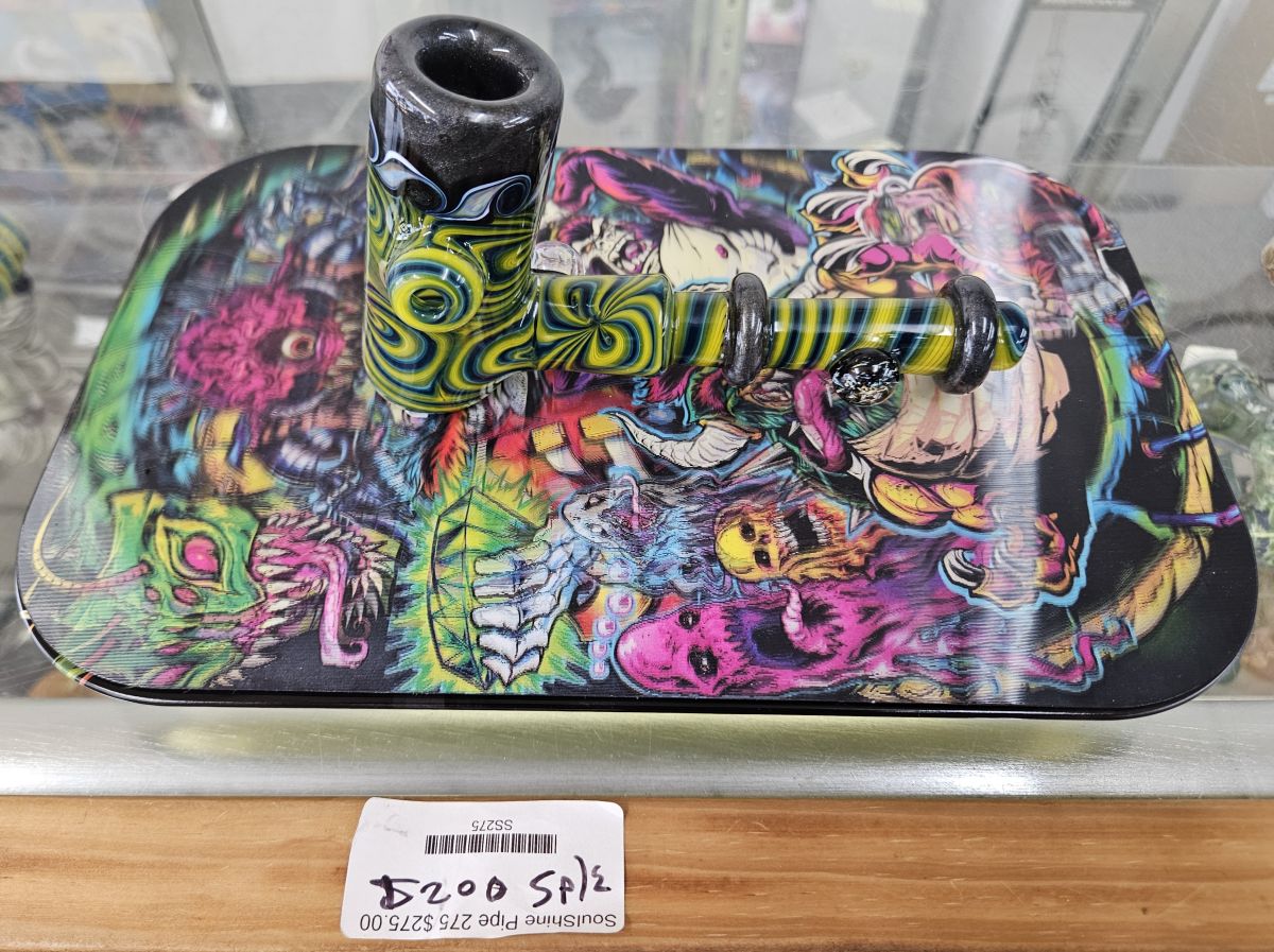 Happy Tax Day- Yeah, we know...but let Gangsters of Glass do a little something to make you feel better. Today we're having a Custom Blown Glass Sale with discounts on all custom blown glass. We have Deep Discounts on some select pieces like this beauty by SoulShine Glass - $75 dollars off today and tomorrow. May as well pick up a 3D covered tray with a magnetic lid for $20 while you're at it!